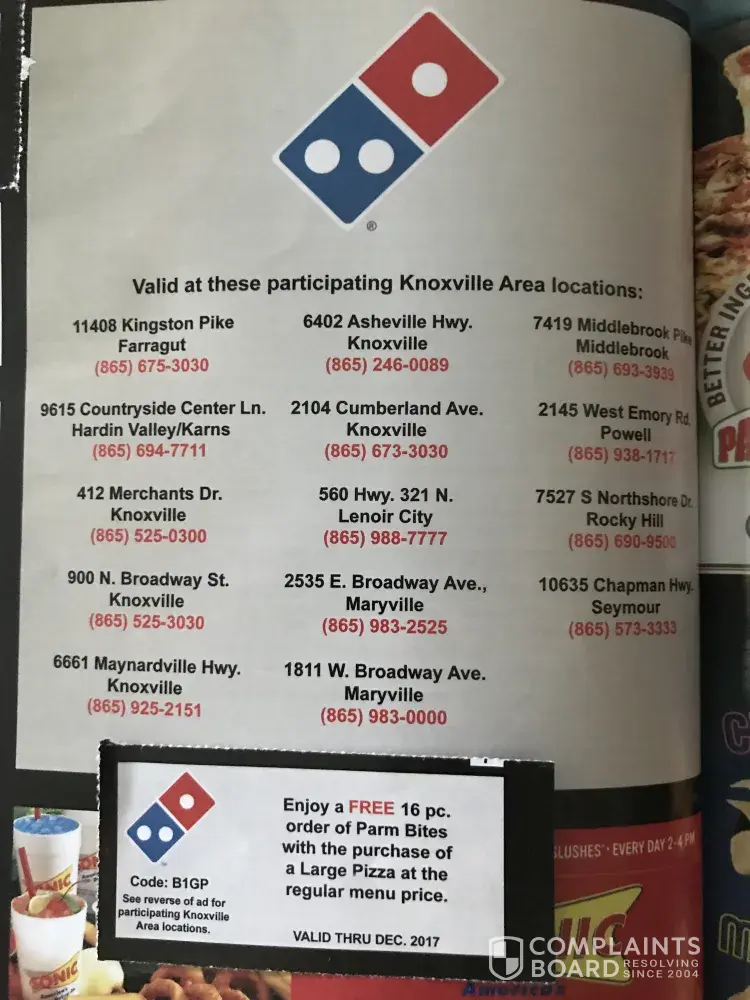 I called the Dominos on Countryside Center Lane. I have a coupon for a free 16 piece Parm Bites. The manager told me the coupon expired. I explained that it didn't expire until December 2017. He said they didn't except this coupon. I told the manager that it said it was valid at that particular location. They said they didn't participate. I told him that didn't make any sense at all, specifically because I had the coupon in my hand. I asked if they would go ahead and accept the coupon since it was Dominos and since it said it was valid. The manager said no. For the life of me- this makes no sense at all. I asked the manager for his name- he gave me his first name but said I didn't need to know his last name. My family already had their mind set on pizza, but I didn't not feel comfortable calling that location back, so we called the competition (Marcos Pizza) Tried to do business with Diminos- but hey clearly did not want to do business with me. I do NOT feel that this was handled in a professional customer service fashion. Unsatisfied customer scratching my head...