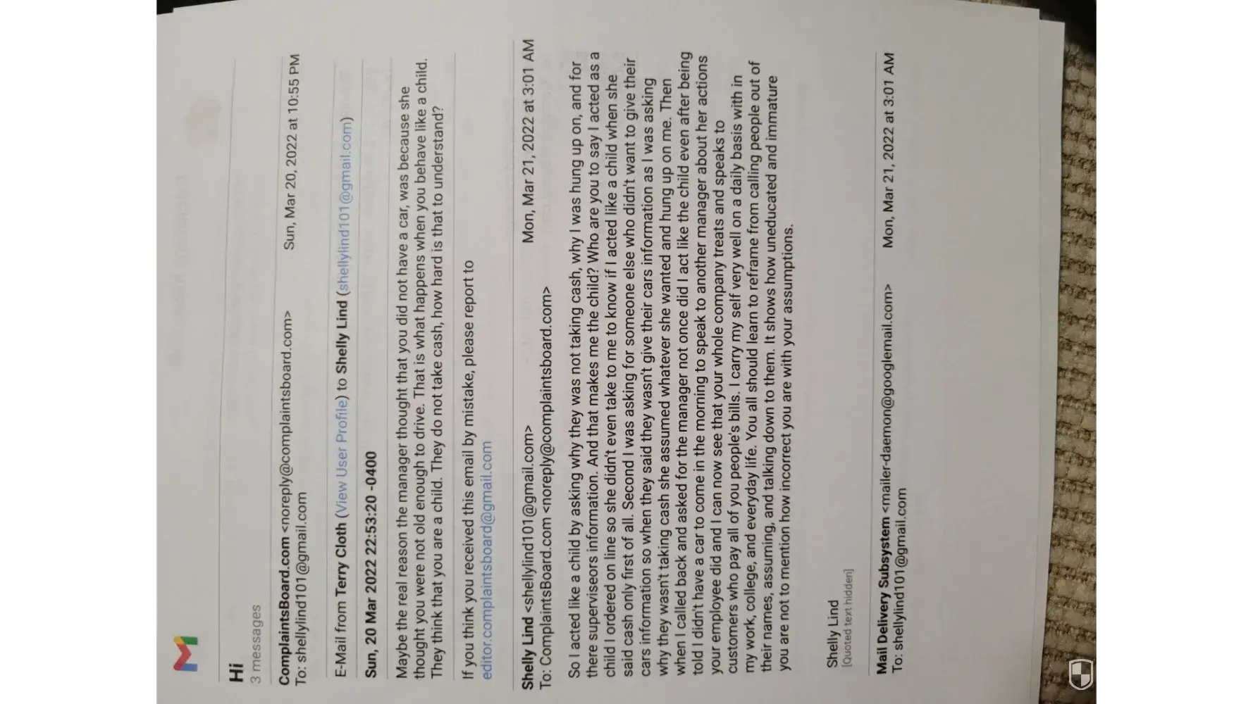 I received this email for complaining and being disrespected by one of your managers, which is completely unexceptionable: