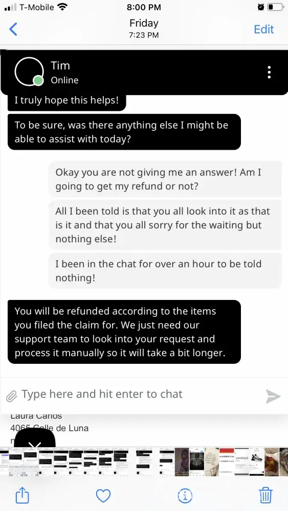 Desired outcome: Some sort of reimbursement/ refund for the merchandise