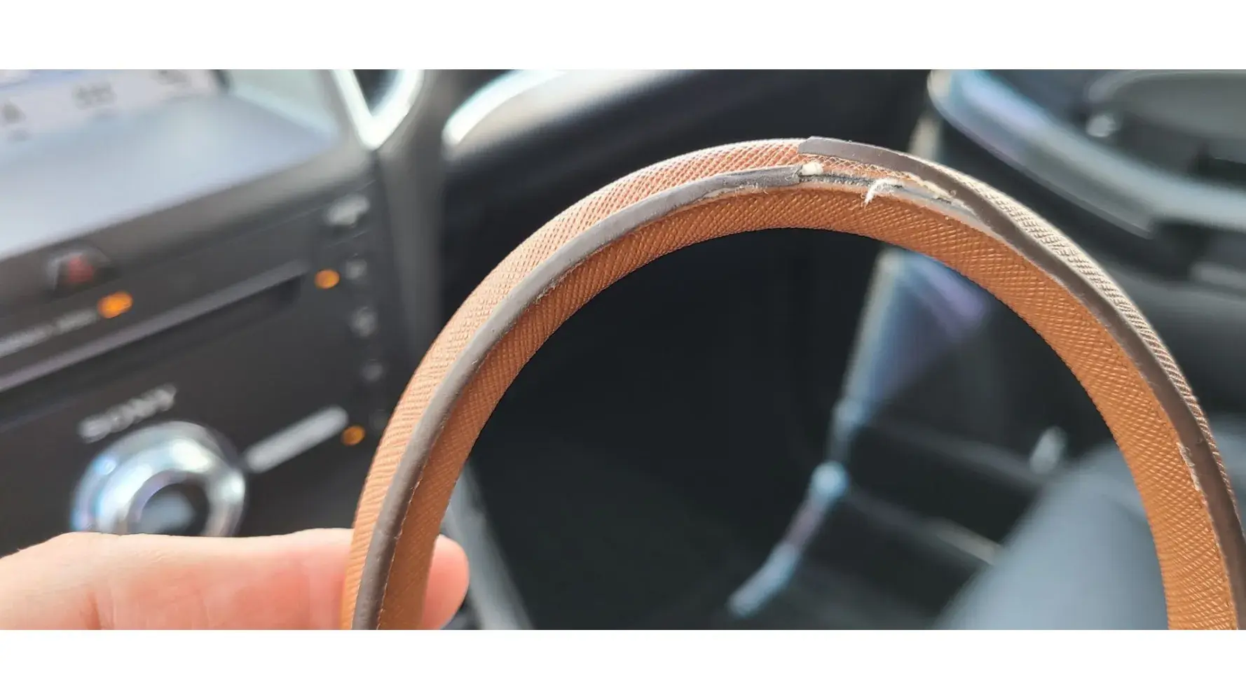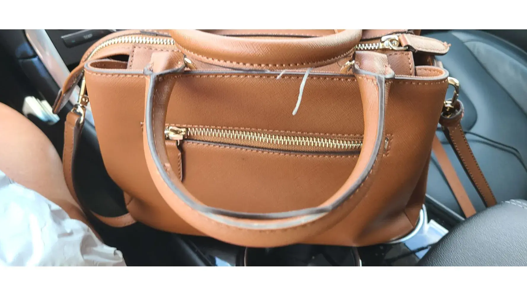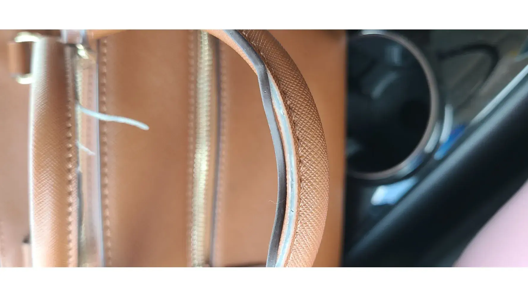 I purchased this handbag a year ago. It's been absolutely perfect except that about three months ago the brown seam along the edge of the handles began to peel off, only on one side of each handle.