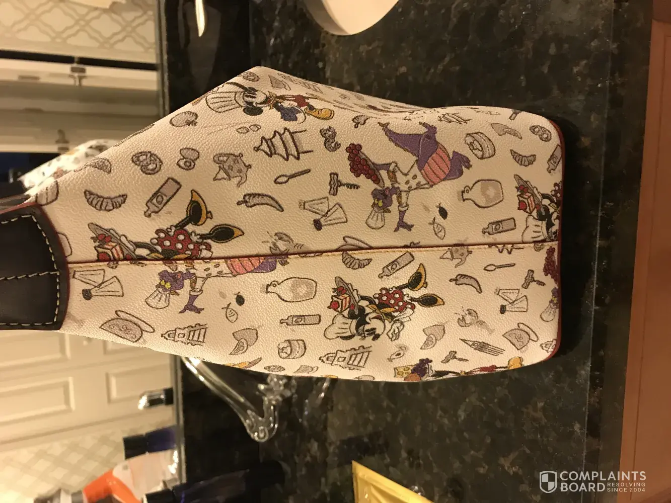 My husband purchased the bag at Disney which is a limited to pass holders only during the food and wine festival, I wasn't pleased with the quality of the making of this bag because your name and the price of the bag I would think it should be made more professional to match the design to the side seams in both side, this bag has half of the Disney characters body sew at the seam with another half of another character that doesn't match, to me the material should have been cut first to match the sides before it is sew together to make sense. Dry disappointment