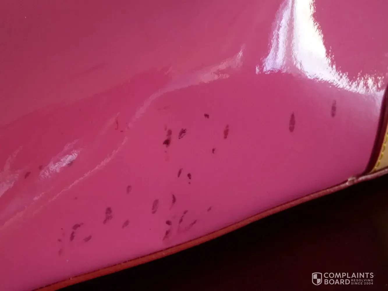 It exactly happens to me! I bought the purse from Macy's and it turned to ugly Yellow. The customer service told me it happened because you use your purse under the sun! this is redicouls!