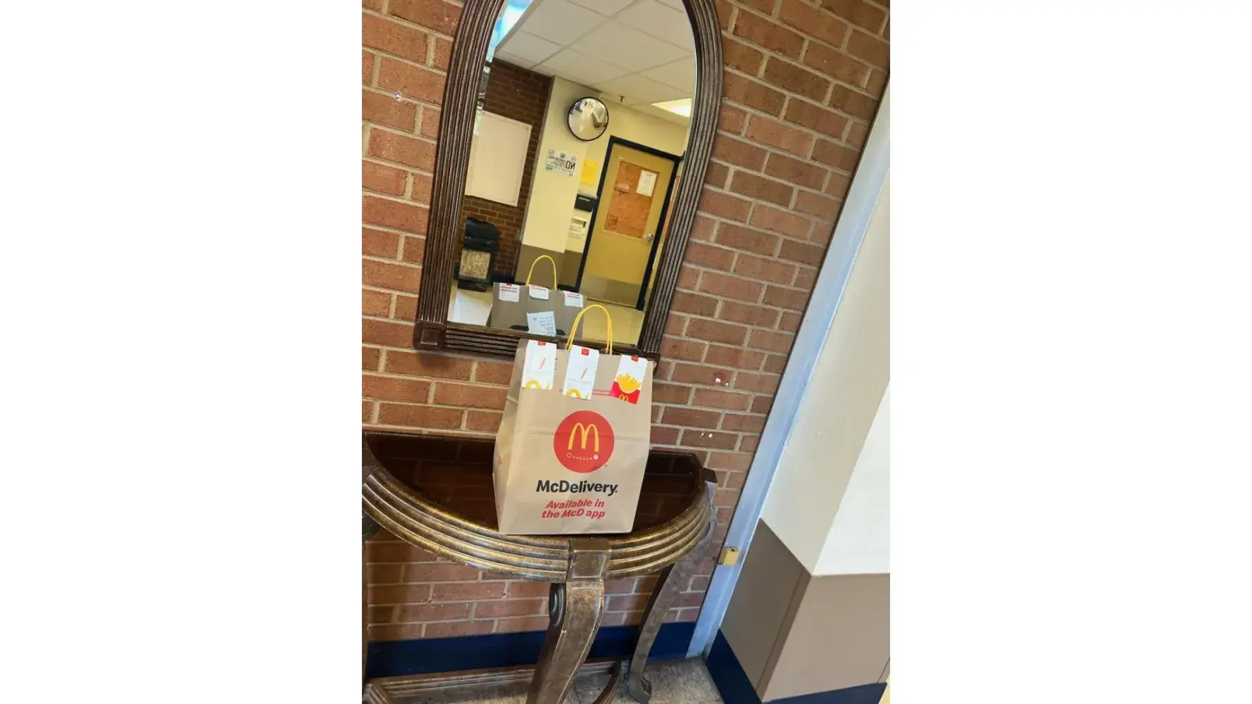 pic comes in. its a pic OF THE LOBBY. They left it on a lobby table just inside the doors.