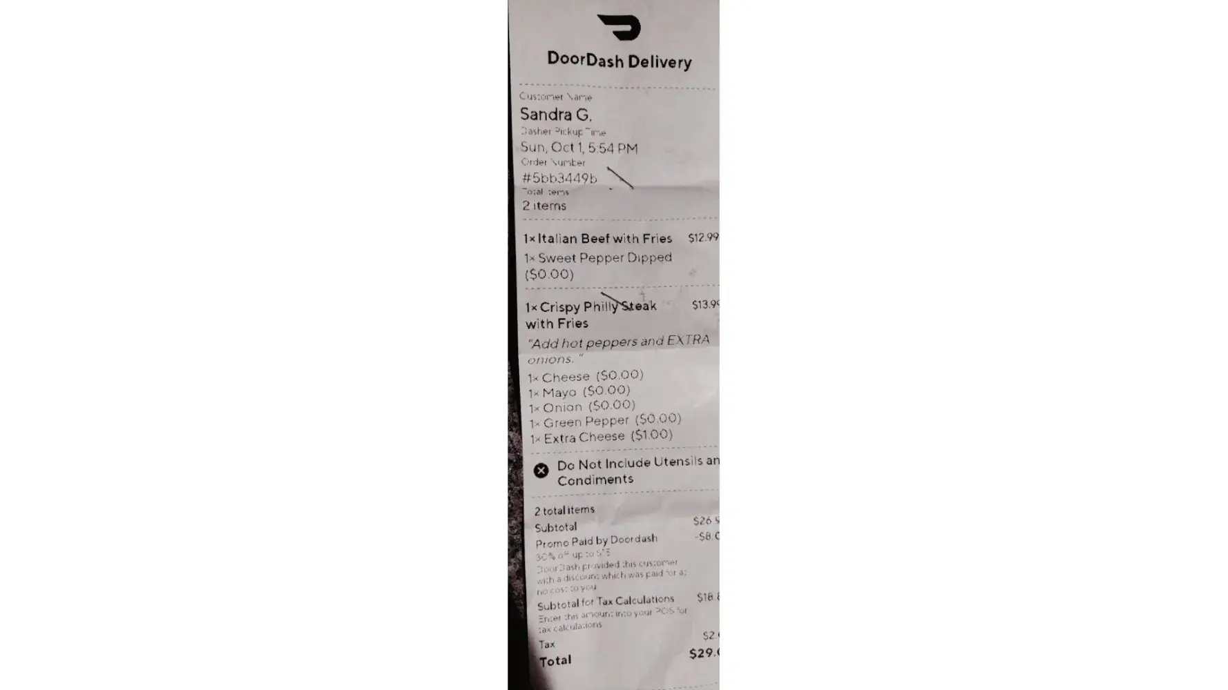 She said she wasn’t able to “turn the order over..or aroundâ€,or something and have them replace our meal, but she could return the entire amount that I’d lost dealing with DoorDash.