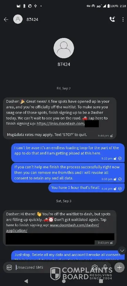 Desired outcome: I do NOT consent to selling my data DoorDash is hereby notified. Cease and desist immediately.