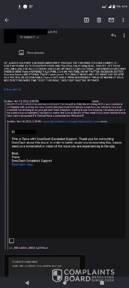 This is not acceptable, I need to talk to a manager! It’s not my fault that you have to compensate me, it’s because Door dash isn’t following instructions time and time again!