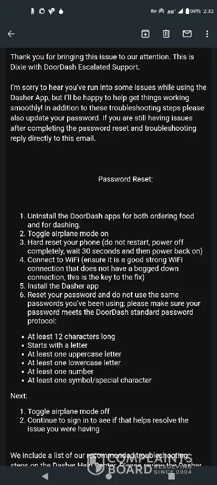 Doordashers are signing up under friends accounts because they themselves won’t pass a background check. I have had very sketchy people who are obviously intoxicated bring my food. It is very scary as a single woman to order door dash and be expecting a woman because that’s what the account is under have an impaired man at my door.
