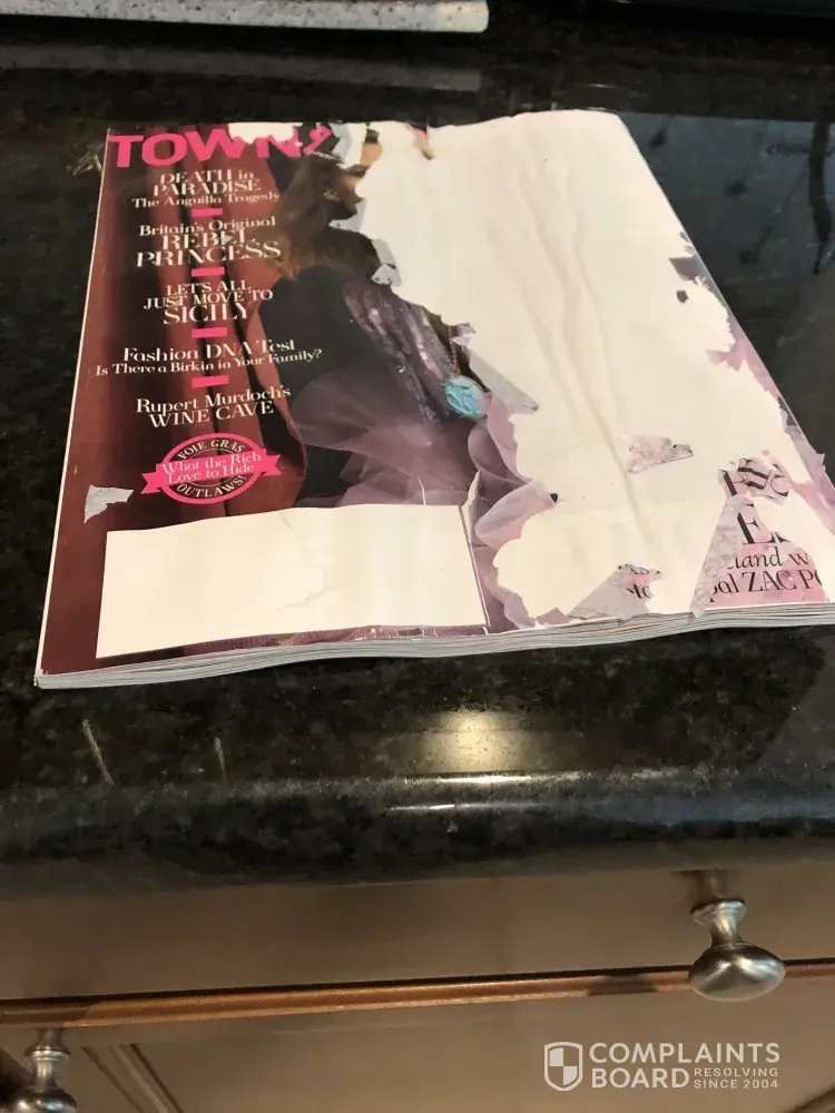 delivery of Womens Health magazine was completely damaged.