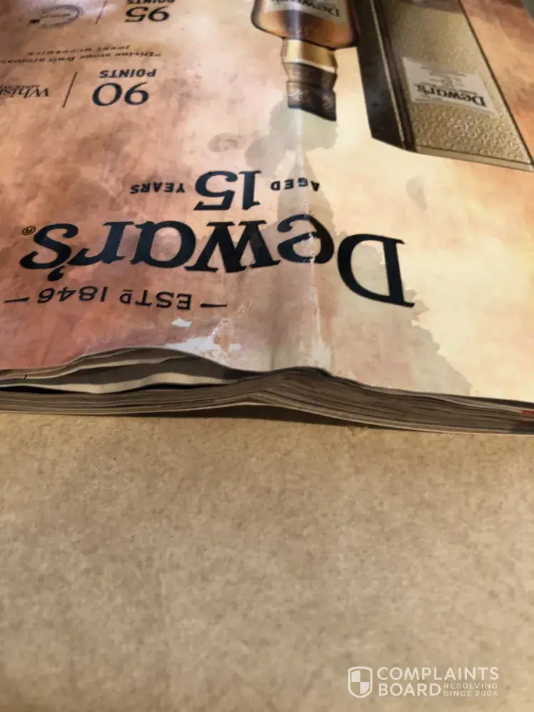 For the last 4-6 months my magazine has been delivered via door front direct, and not by my choice. Every month it is dropped at the end of my driveway, usually in s spot where it would accidentally get run over. Today I found the magazine in it's sealed plastic wrap in another bag as it was raining. When I took out the magazine it felt a bit soggy, and when I turned the first page the binding came apart.