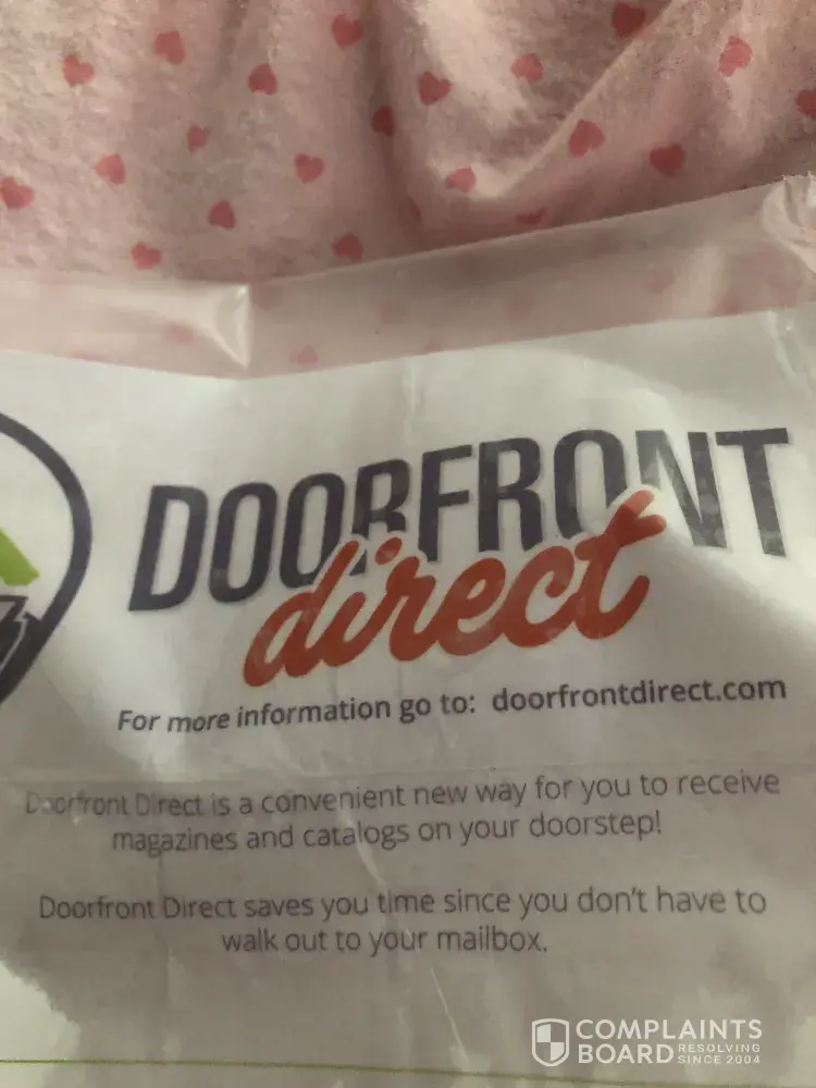 Doorfront direct is a brand name for the magazine delivery service run by Publishers Circulation Fulfillmemt Inc. (PCF Corp.) PCF Corp is a subsidiary of Gannett Publications and the CEO of PCF is Randall Brant based in Middletown, NY. I think they’re trying to undercut the postal service in terms of magazine delivery costs.