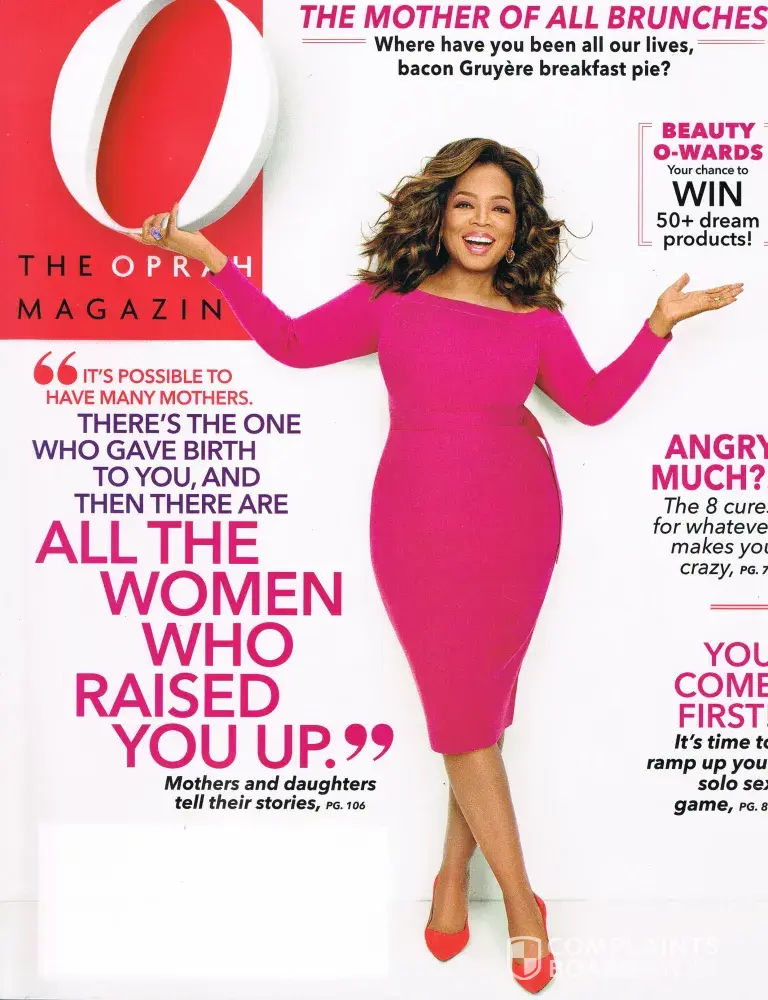 Last week July 22nd, I just received the May edition of this Oprah magazine. Mothers Day edition. Really? I was in SHOCK to say the least. And where is the June, July and August editions? Cause I haven't seen anything and don't know if I received the April edition. I Thought it expired... I notified the magazine and they told me I am paid through 2020 and they told me to go online and enter this complaint.