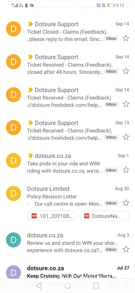 On submission of claims this year (if which there have been 5) - Dotsure follows up with a call every time. That's at least five calls. They ask me every time for my bank details. They ask every time for documents I have already submitted - which is just a delay tactic. They say the matter is resolved and payment will be made. And then they cancel my claims! I'm not notified of the cancellation and I am not provided with reasons for the claims cancellation.