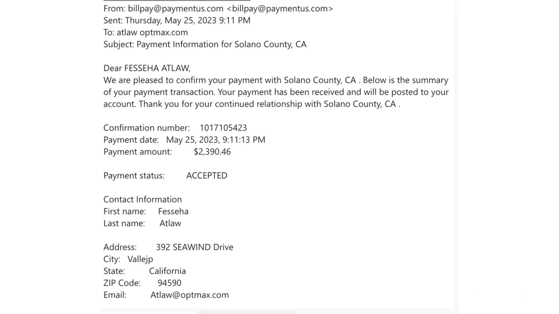 TAX has been paid on property : 392 Seawind Dr. Vallejo, CA 94590 ,,,,(See attached)