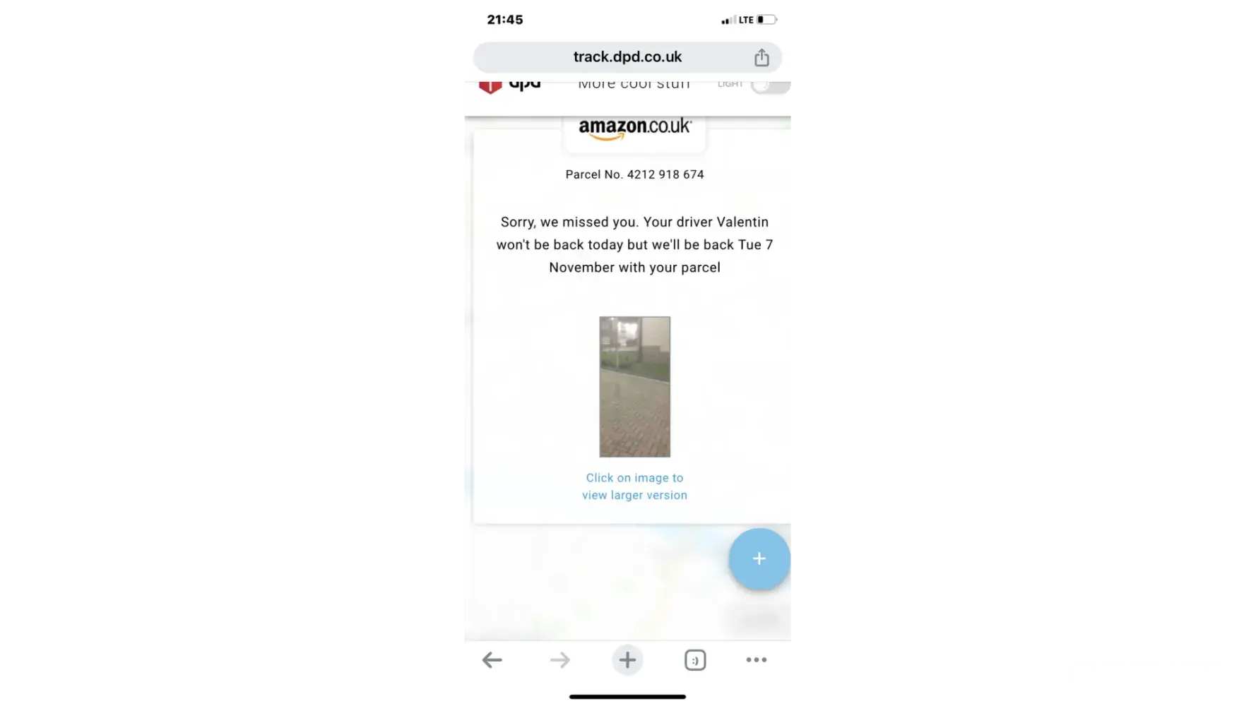 We have been home all morning and afternoon to the time we are at now nobody has rang the Bell no one has not the door the picture clearly shows that he was outside the building but all these took a picture of himself still outside we have the same problem with a certain DPD delivery driver that comes around the area because he had a fallout with one of my neighbours and when she was having packages delivered he would terminate and said there was nobody home and drive back off out the road with the package and not knock not the door this is not acceptable I work I can't take time off of work I've just had my holiday leave I want my package I am paying for an iPhone contract that I don't even have in my possession.