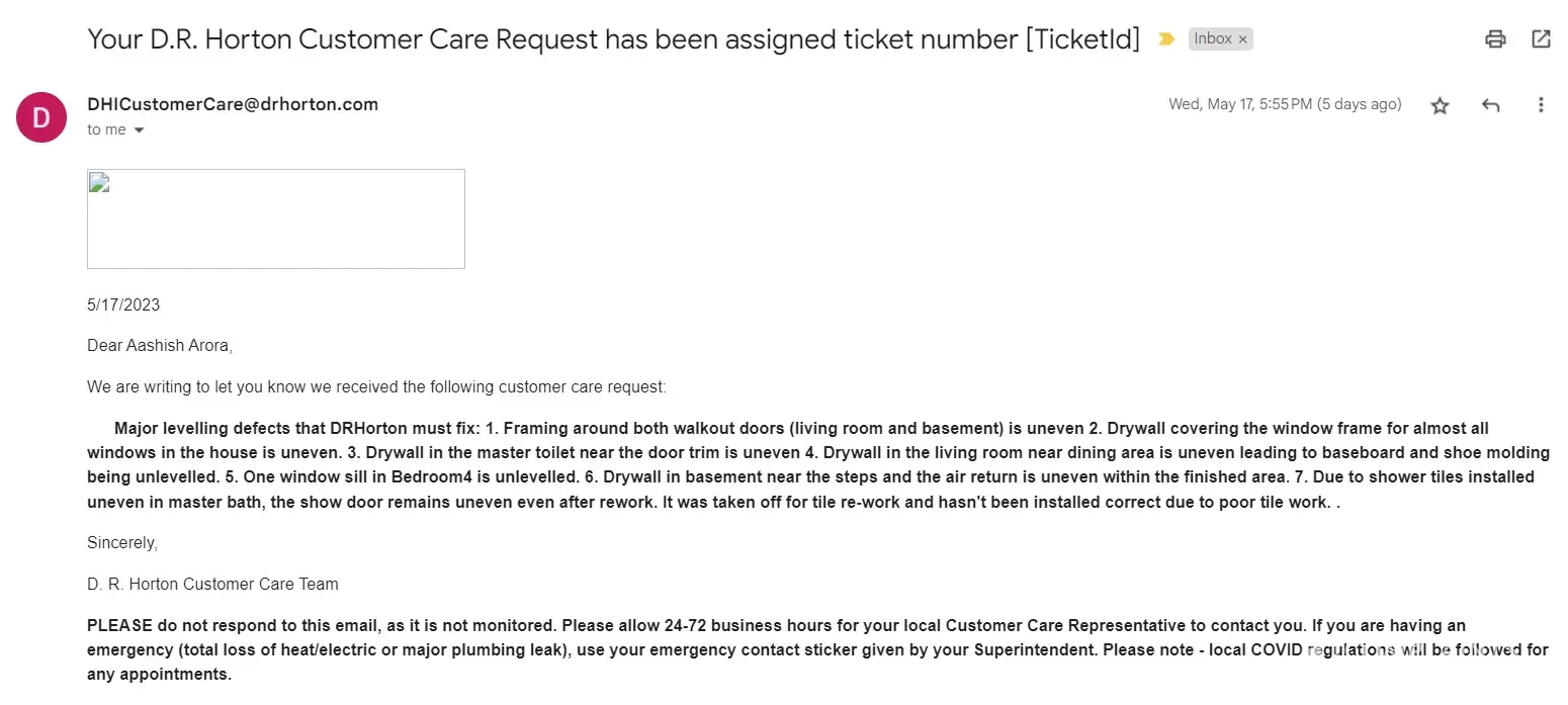 I’m 62 years with chronic conditions and DR Horton expect me to spent money and time fixing the issues. This is the way that DR Horton treats senior citizens.
