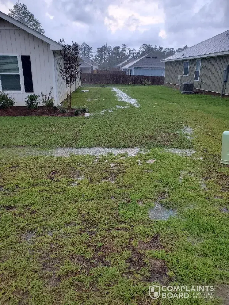 we are having issues with drainage in the front yard. our drive way is seeping . water is coming up between the sections and is always wet as well as sand washing up threw cracks. nieghbors on both sides have thier gutters facing our yard as thats how the builder installed them, Contacted warranty company. they stated they will come but noone has. other owners on our street are having same issues as well as the sidewalks are crumbling. these homes have such poor craftsmenship all they WANT IS TO GET PEOPLE IN THESE HOMES AND THEN ITS SEE YA! The promises made are just a bunch of bull.