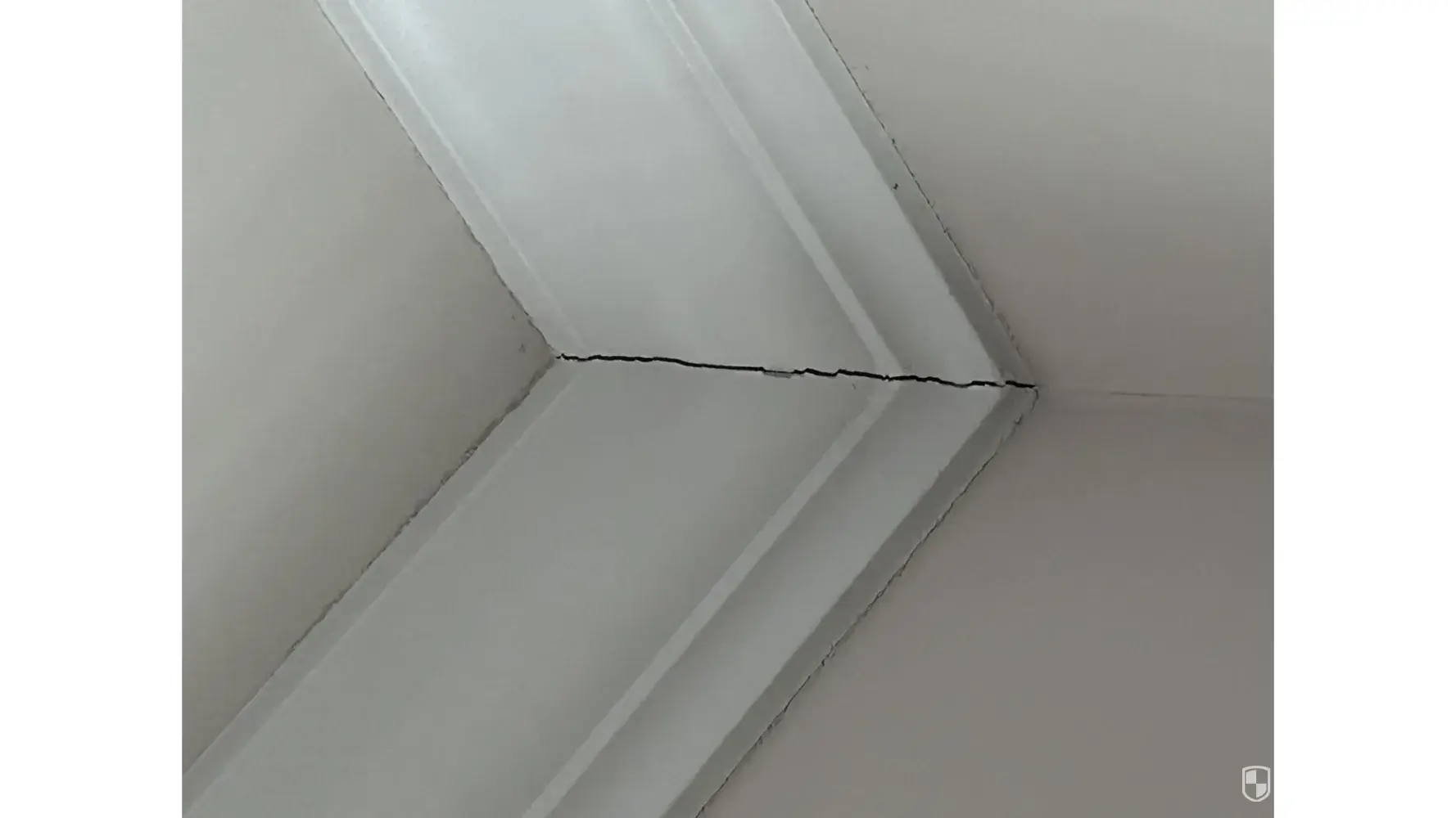 1. The corners of the crown molding on the ceiling have separated and show cracks.