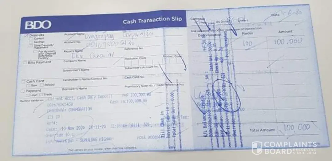 Desired outcome: credit back my Php 50,000.00 to my account
