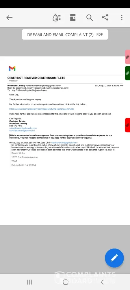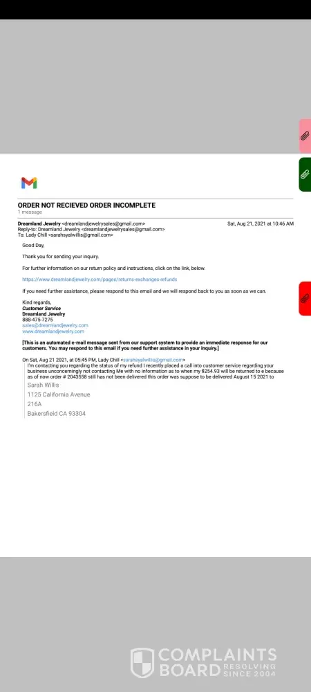 I have been ordering from Dreamland for many, many years, and not once have I had an issue with them. All of their stuff is good quality, comes within 3 to 5 days, always in their blue signature box, and I still have most all the pieces I've ordered, probably 40 to 50 items! All can be worn in the shower, to bed, and continually without taking off and no color changes or issues like many other places, and good prices! I can't believe there are that many people that have had issues with them, or they got the wrong site? I love dreamland and will continue to order as long as they are around!