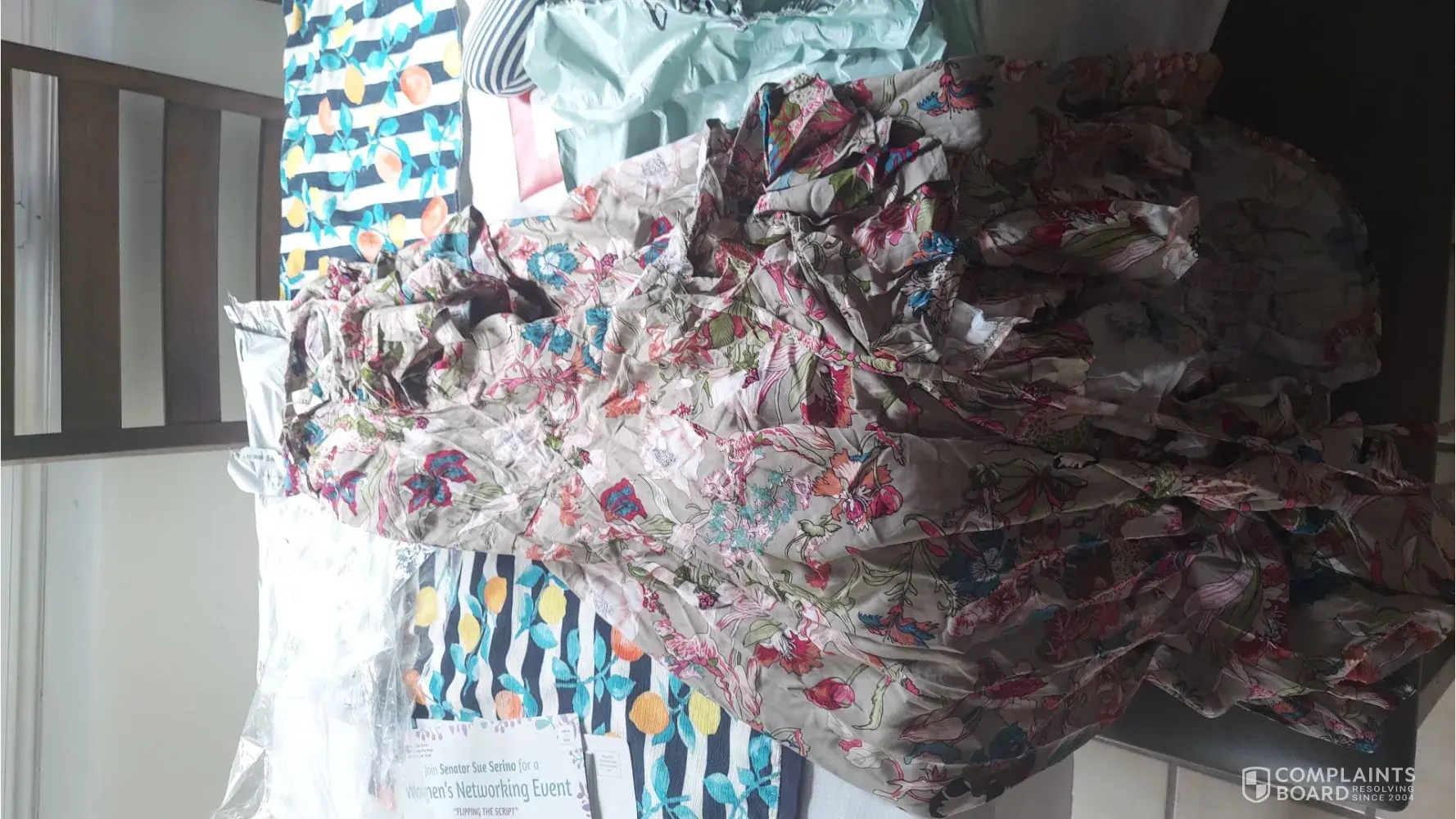 6†x 6†package. The dress was completely wadded up and most definitely a mess! It was cheaply made and type of material was very thin and would have been a nightmare to try and get wrinkles out. I never even tried it on and immediately asked for a return label. It was returned the next day! I am so very disappointed in Dressbarn! I can honestly say I probably spent thousands in their actual stores over the past years! The quality was exceptional! They did give me a store credit and after I requested the credit be returned to my credit card because they had absolutely nothing on the website that was worth a penny and nothing I would ever purchase, they advised me that they would give me a 130% store credit! This still didn’t resolve the problem because their items were cheap looking, prices way to high for quality and had nothing I wanted or ever would want! They again advised me they only issued store credits! I went through EVERY item on the website, when I selected a item it always showed size “04†and nothing close to size I needed. This is very frustrating since most of my work clothes previously were purchased from the OLD Dressbarn! I believe this Dressbarn.com is taking peoples money and taking advantage of the name!