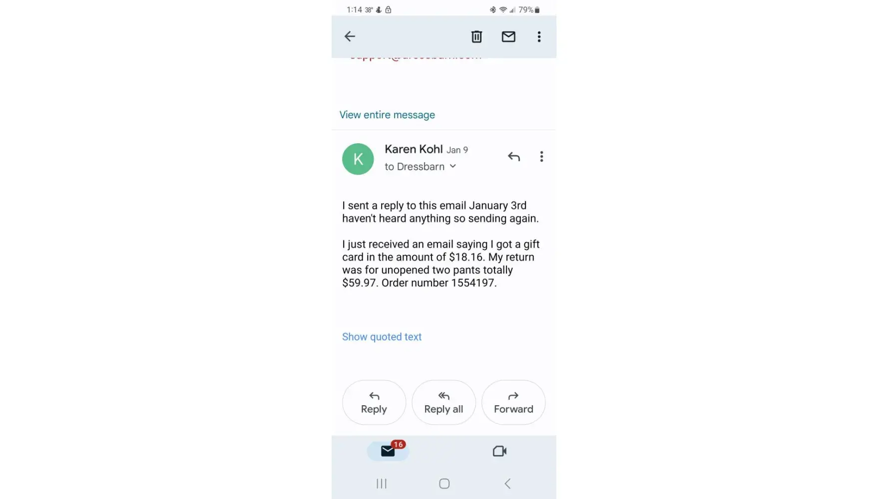 Thank you for being here. Here is a copy of all the information I've been using to try and get a response from Dressbarn since I made the mistake of ordering a dress from them on 6/7/2022 and now need to return it for credit refund.