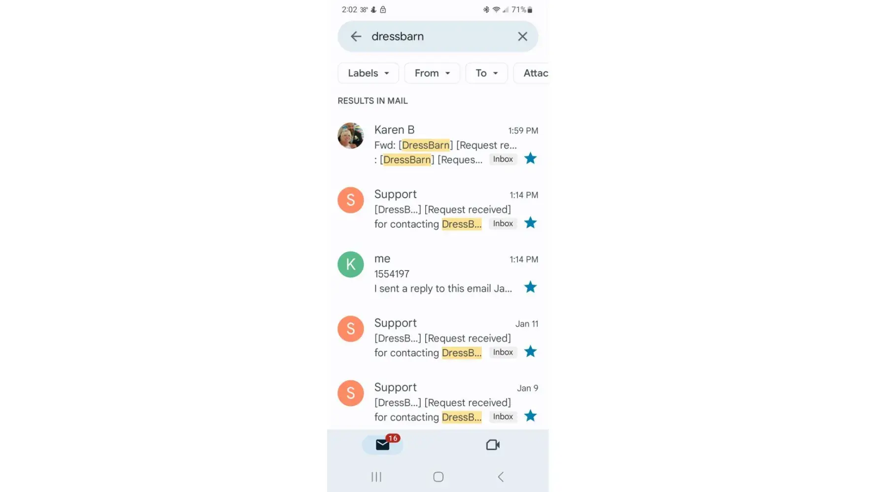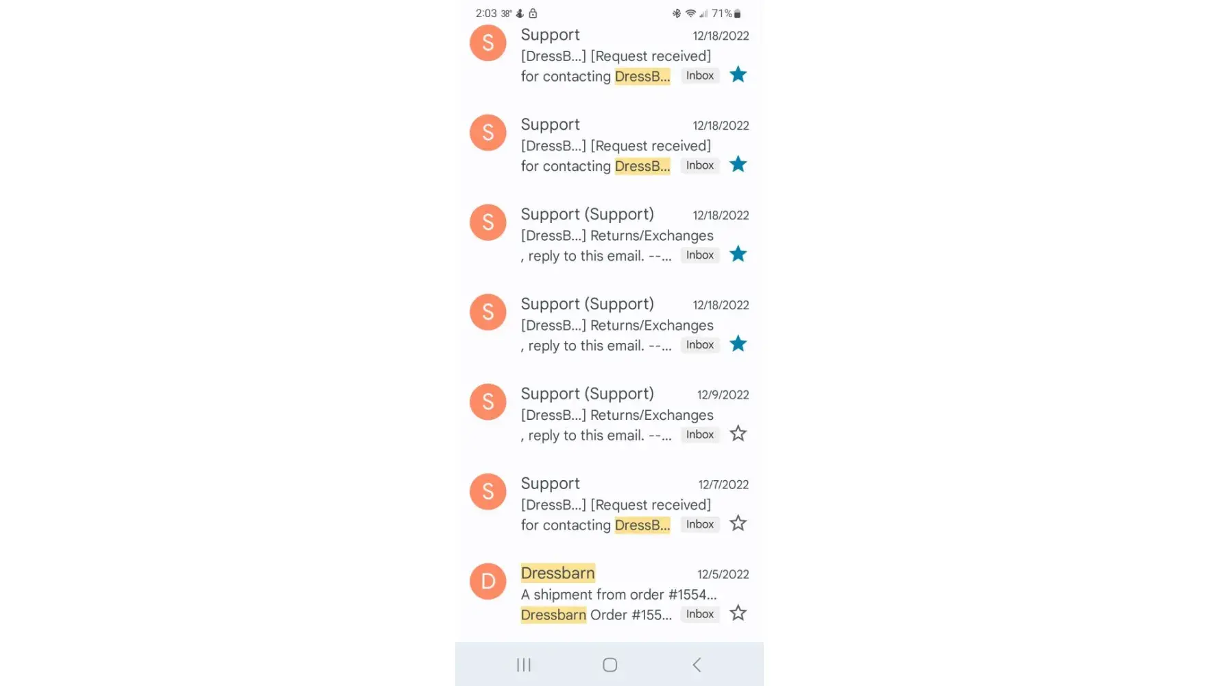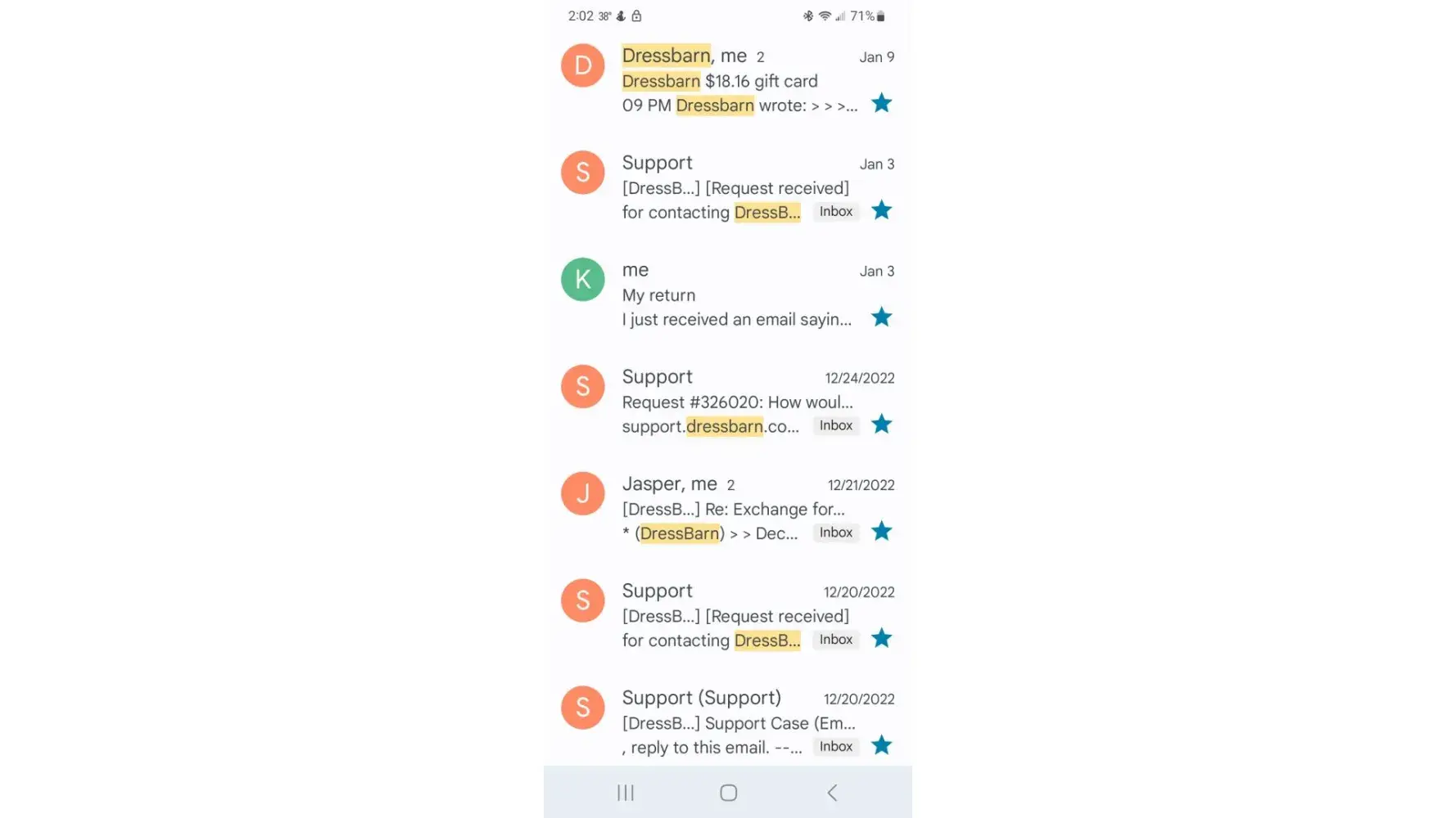 Request numbers from dressbarn automatic emails... Along with pictures of all the emails sent and received with timestamps and dates.