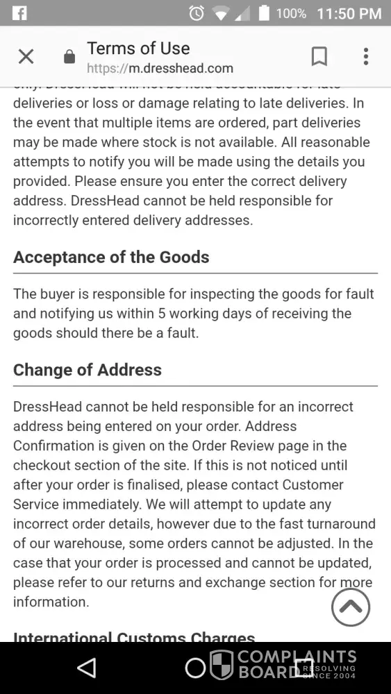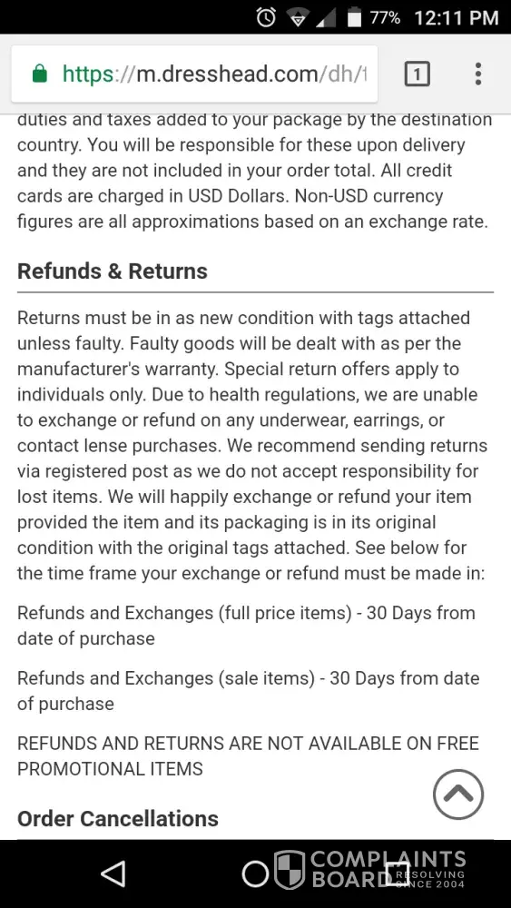 Further, as I have followed all of their terms and conditions as outlined on their website I should not have to pay for the cost to return these shirts period, let alone the cost to ship these shirts all the way back to Hong Kong.Their web site clearly states that US buyers do NOT have to ship their returns all the way back to the country of origin.