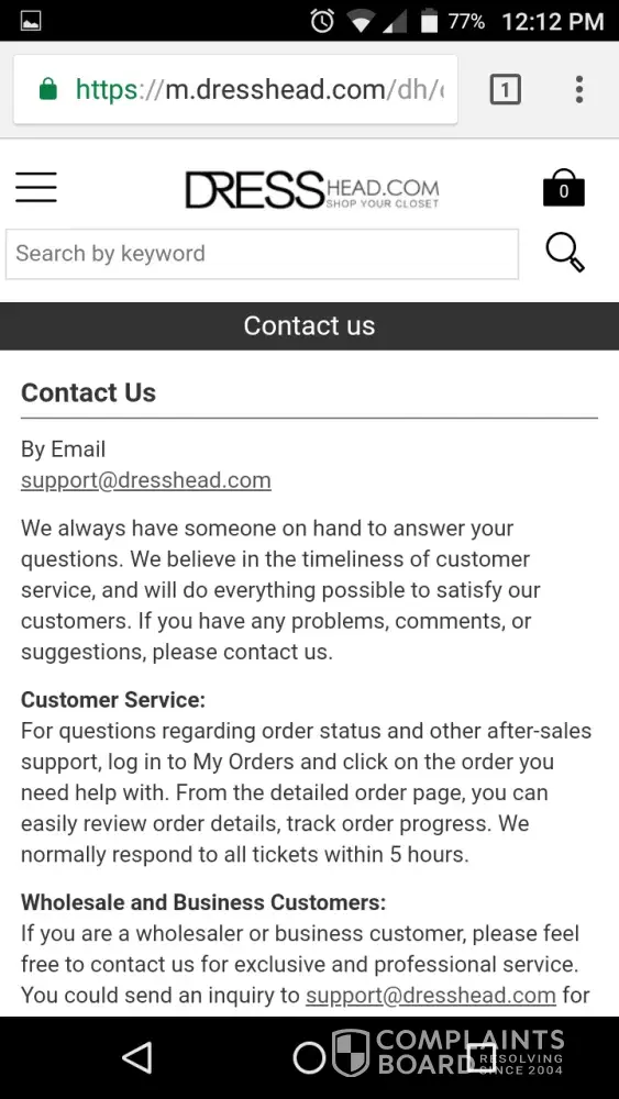 DressHead emailssupport@dresshead.com100%Confidence score: 100%Support