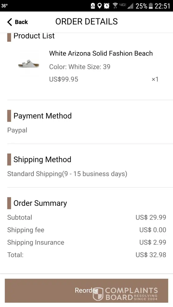 Here is my order details :