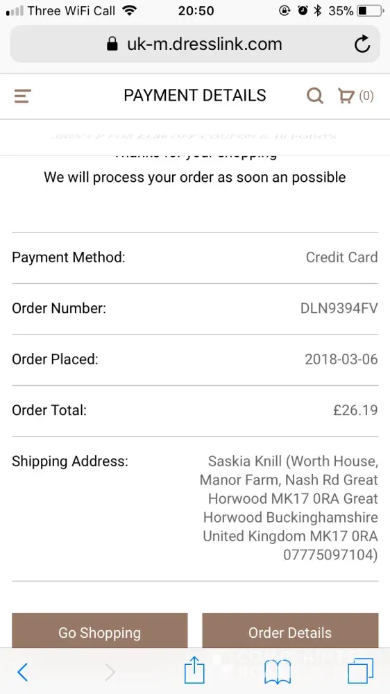 I ordered a dress yesterday and have had no confirmation of the order to my email? I now see that there are a lot of complaints of items never being received. I want confirmation the item has been ordered and an email to confirm when shipped email is [protected]@hotmail.co.uk