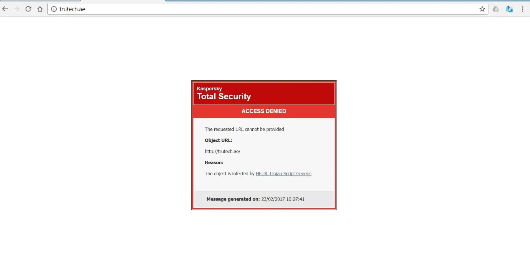 For the past few days we are facing an issue with Kaspersky Antivirus. Our website gets blocked with the following error which was actually working fine before.This happens only with the Kaspersky Antivirus.Request you to help in this regard.
