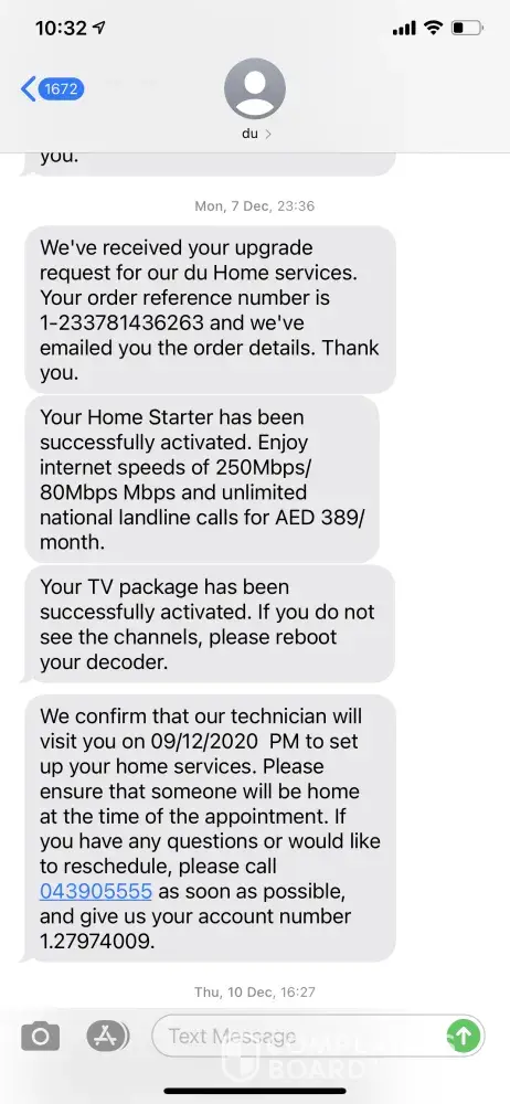 1. I upgrades my package personally at Du store and received e-mail and sms confirmation. Normally a technician should be coming to install the new router, however I wasn't able to book it immediately. Then after some time I called to request for this technician and 3 of call center officers were not able to do this simple task. They were telling me that I don't have any upgrades and I should purchase a new package in order to receive a new device and technician visit. And this 3 times in the row! Finally I called again and on my 4th attempt it was done. Just crazy.