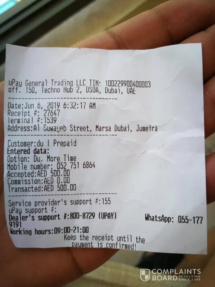 Du account no is 1.[protected], the customer care failed to produce the documents as a proofs for the phone which was issued .