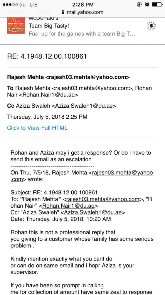 Now i finally managed to arrange some fund and paid some amount and for next 2 months gave them a cheque, staff called rohan nair was back to back contacting me to get the payment and was helpful .If you go through my phone history i pay DU around [protected] everymonth because my phone usage is high due to job need, hence it clears how important this number is for my job.