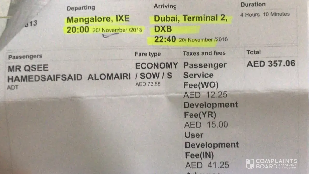 My booking flight number IX-813 fling from manglore to dubai on the 20th of this month.