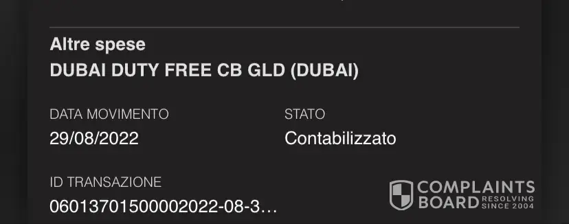 Transaction name : Duty free CC DEPT 281, Dubai ARE
