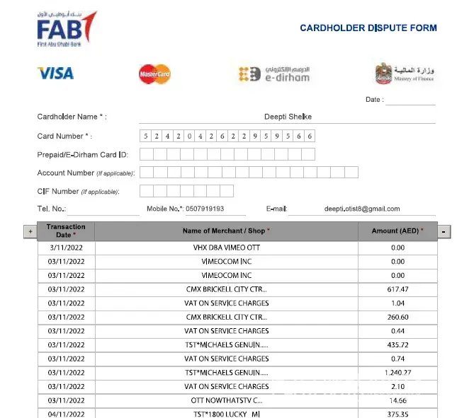 This is with regards to my Master card holding with Dubai First.