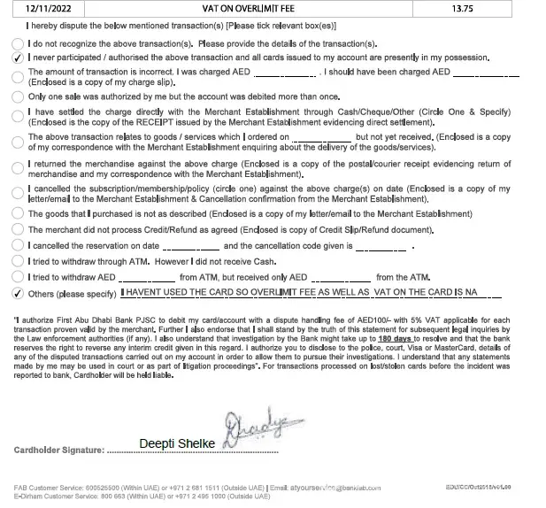 Same incident is happened with me as well. This is organised scam done by Dubai First (FAB) bank. I would like to draw attention of respected authorities of central bank regarding this organised scam