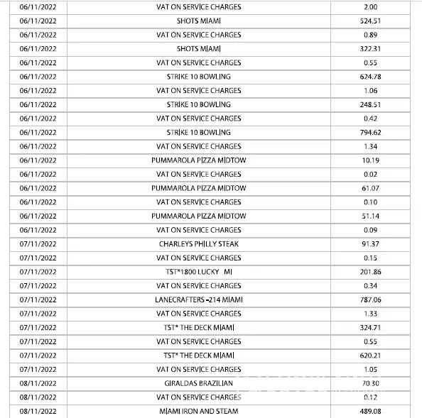 Credit card charges