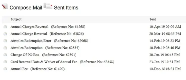 Attached screen will show how many times i was following up for my Annual Fee Charges Reversal & Air Mile Redemption.