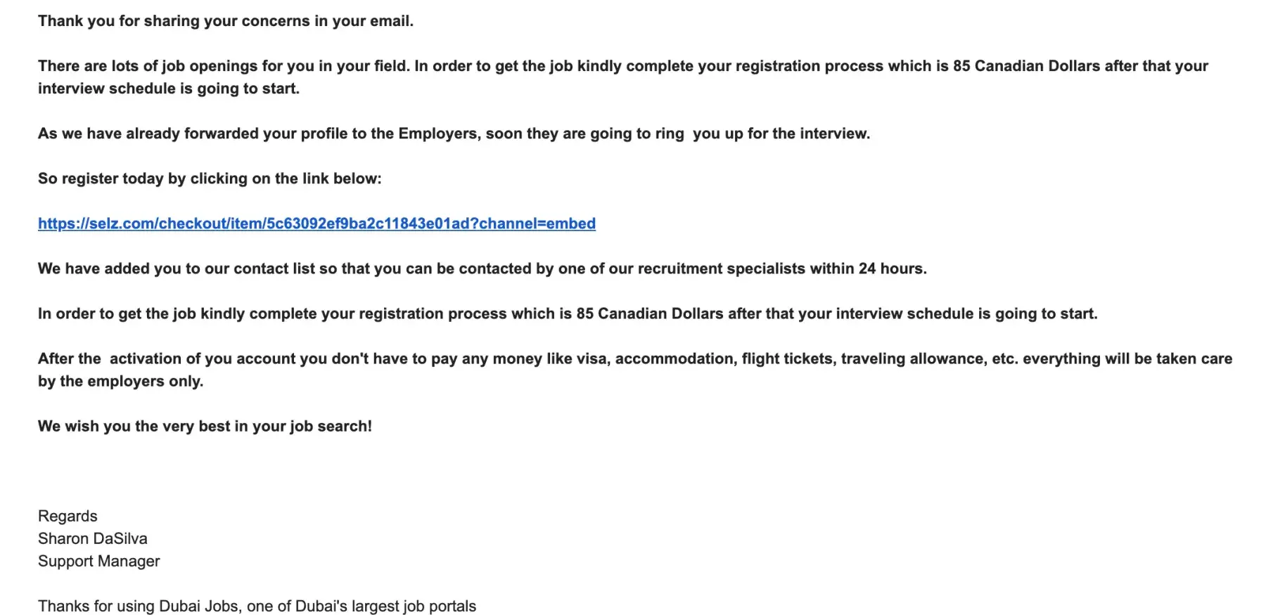I got the below message from dubaijob.net