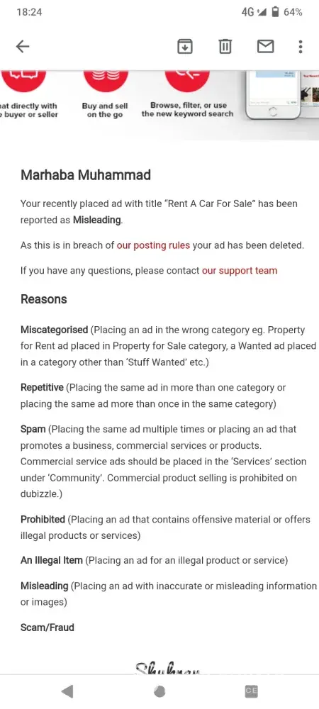 Dubizzle deleting my add every time