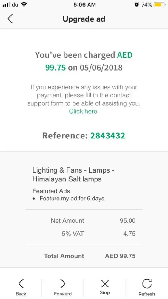 I need the clarification with immediate effect also the return of the amount which has been deducted from my Dubai Credit Card for ad posting payment .