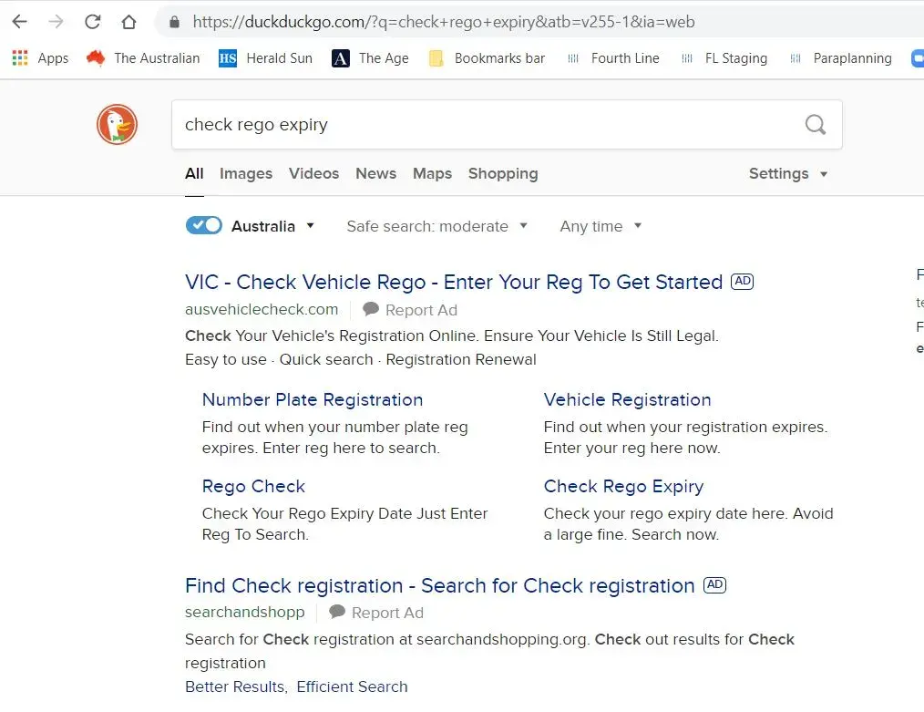 Dodgy website "auvehiclecheck.com" coming up when searching under "car rego expiry"