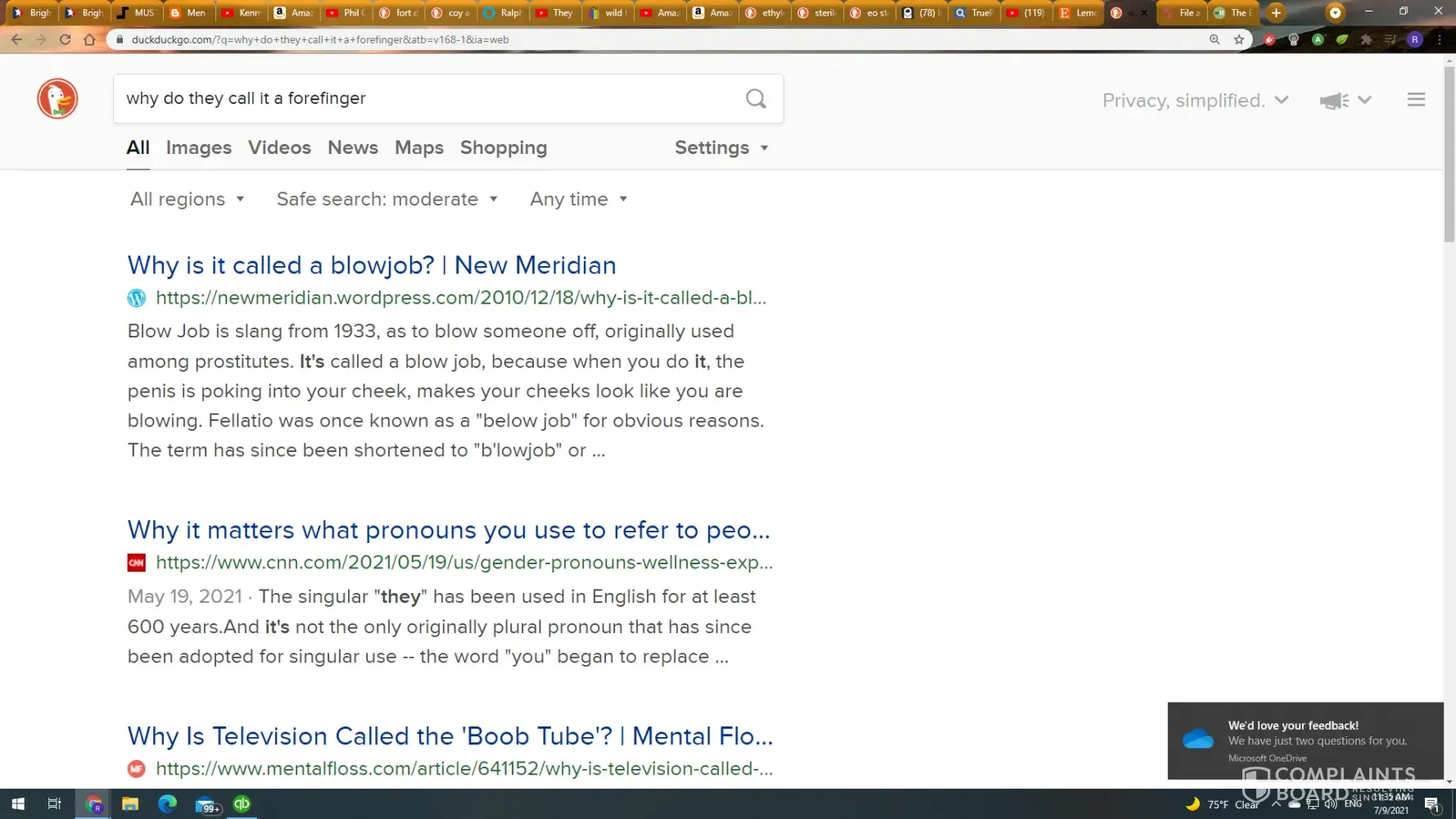 Searched "why is it called a forefinger" and get "why is it called a blowjob"