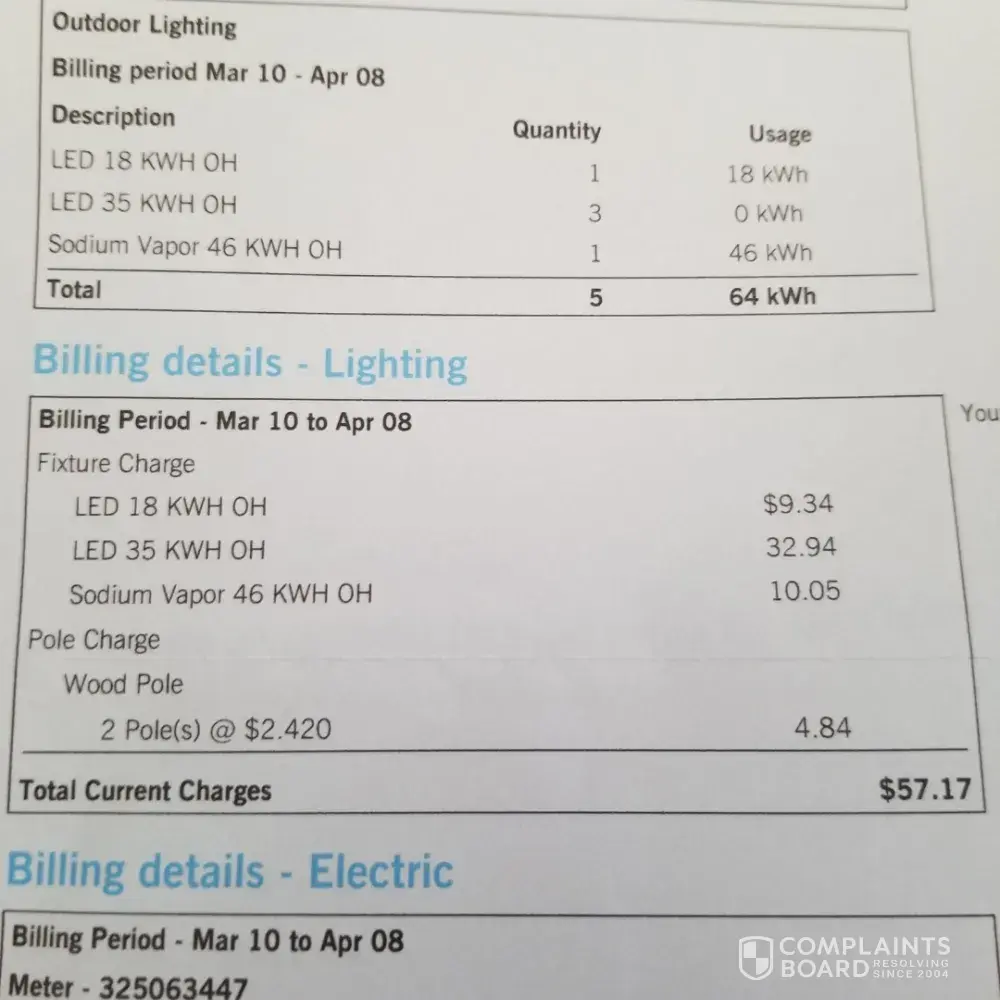 I have 3 lights and I have been being billed for 5 lights and all at different amounts. I called in for clarity why am I paying different amounts and to no avail a week later the issues is still not resolved. You only get 2 chances to exhaust the opportunity to continue on budget billing and I have exhausted 1 time already. Now my bill is due by May 09,2022 and the issues has not yet been resolved and I am told to pay an incorrect bill that I have been paying already for at least 2 months. I am now being told the case # I initially was given has been incorrect and now my case has to start all over again and that it will be escalated. I again have to wait another 7-10 days to get this issue resolved. Meanwhile I am being screwed around because now I am paying an overpriced billed while being on the budget billing that is erroneous all I get is being sent around from person to person on the phone and placed on hold and told to speak with management I need to leave my name and number.