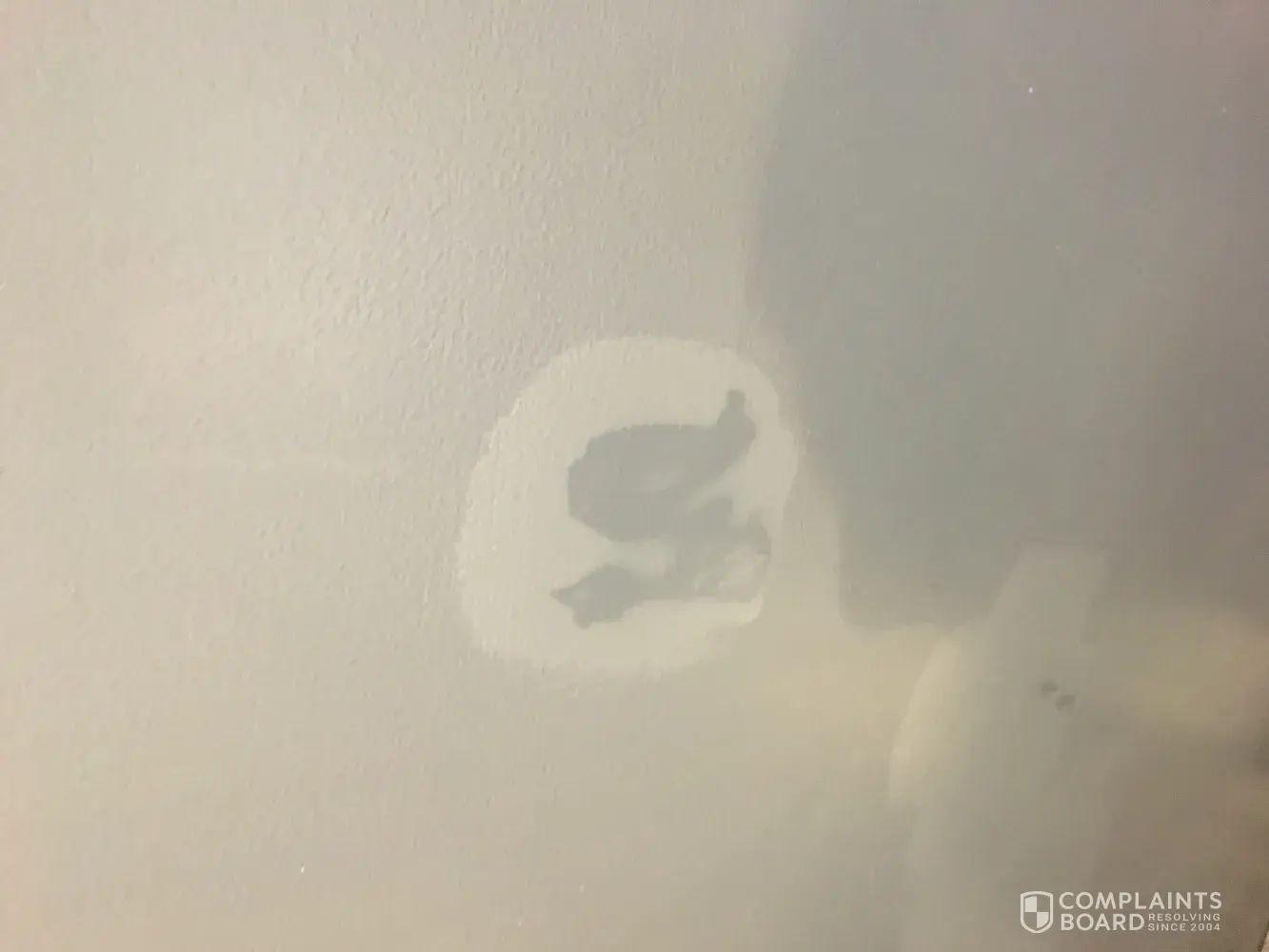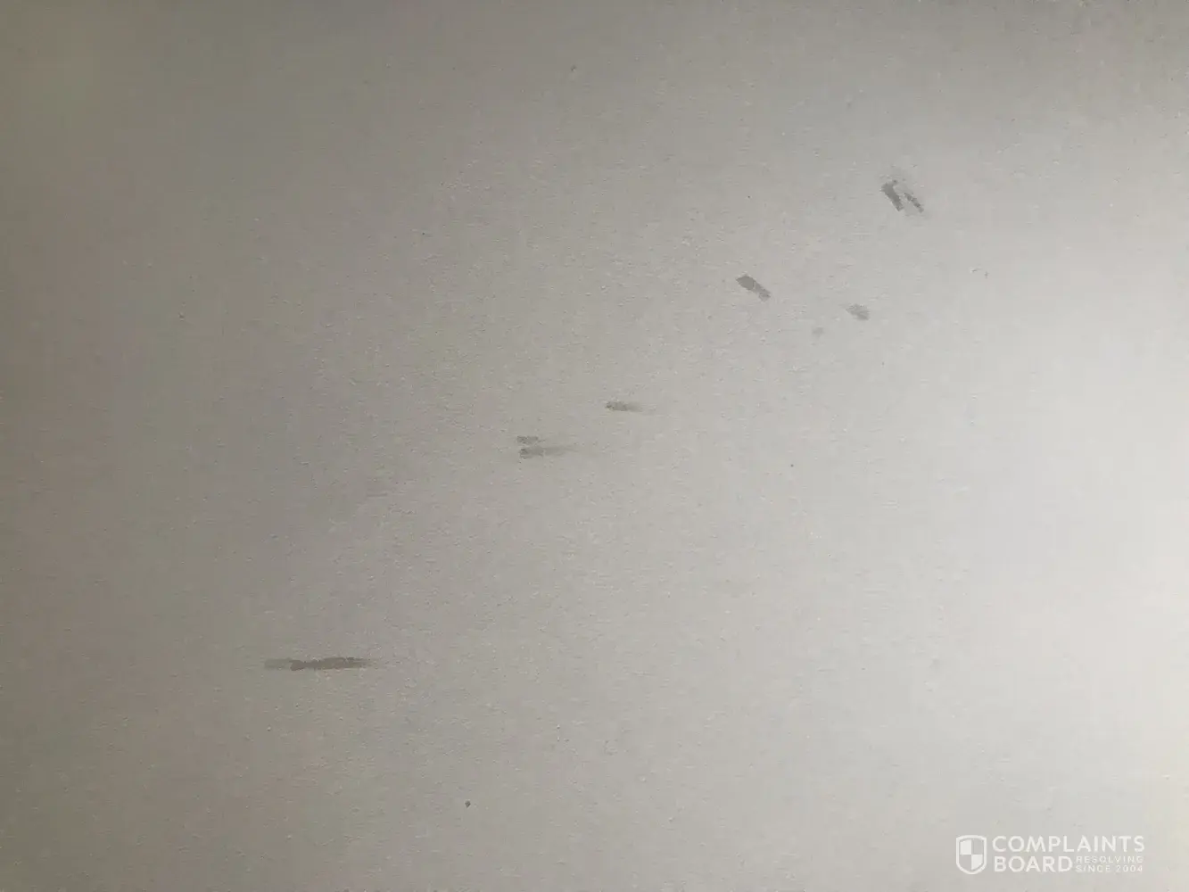 Product code : [protected], I have on two of the days found areas as I have shown in the pictures. The reason they have smeared is because I have tried to remove the spots of what smells a little like oil but doesn't feel like it. So what is happening is that on these days spots are appearing on different parts of the walls. I have also tried with some absorbent paper to blot the spot of liquid but it just leaves a round dark mark.
