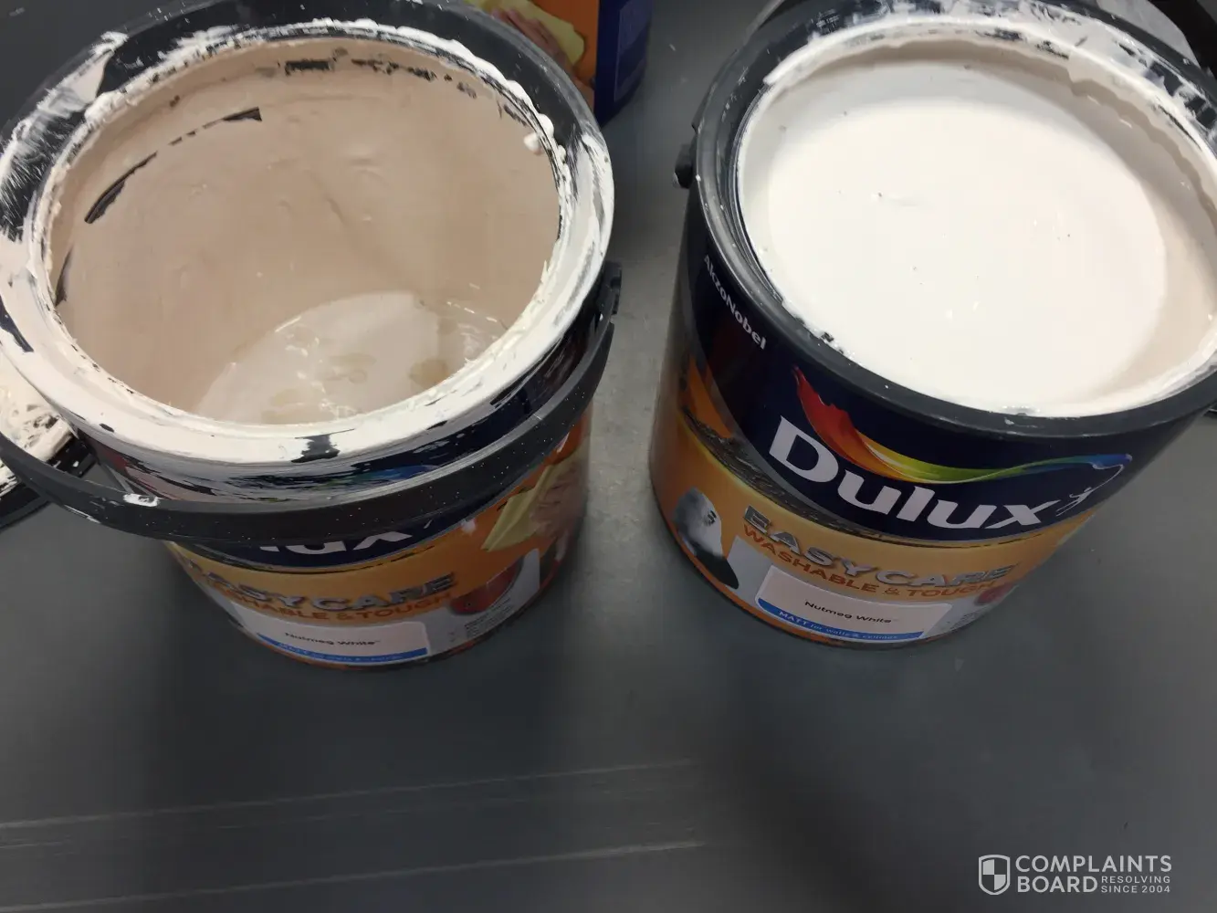 I bought the paint from B&Q on the 28th February as you can see from attached pic. I have always bough Dulux paint and never had this before but I am quite annoyed that it looks like I am going to not only buy more paint but also re paint the three areas.