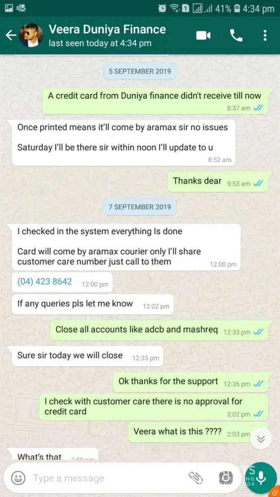 Assalamualaikum I Am adil Hi friends I was taken loan on Nov 2017 and i was paying 2473 every month today is sep3 2019 I try to go all the branch of Dunia it's close and at last I call to custumber care then i ask how much is my balance loan they telling me 45000 I have to pay for closing Omg and in card I was taken 4000 they telling now i have to pay 13700 Omg I Cant money to my family sometime i don't have money to eat my food I just eating one time my food at night I am very helpless my all money I am paying for Dunia I don't Know why and one time I was sick I was sleeping at home this people was calling me to pay card money I was not pik call they are calling India to my mom so bad I really not happy they give tension to my mom n my family i don't know what to do all agent are lie me they was told me i want to pay 1800 with Intrest and they told us in 55000 1800 will dedect but from 2017 Nov till now still have 45000 how I can pay this I am getting sick by take this tension very big problem it's I hope Dubai government help us for this who can help me for this I don't know Allah will help me one-day Inshallah people be careful always takecare.