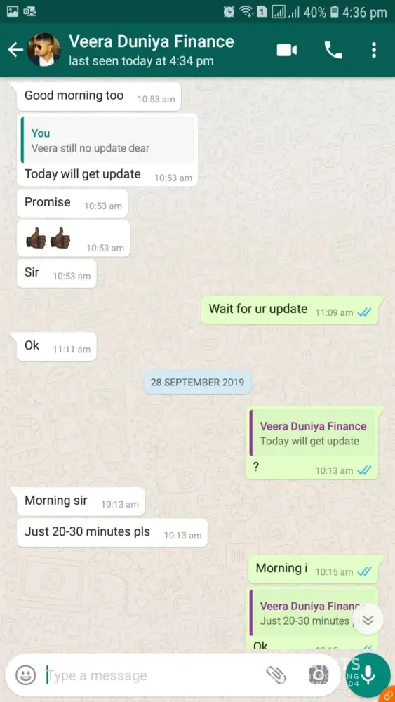 Well they have started calling me and threatening me in a very bad behavior, that they are going to bounce the chq and will file a case against me in police station,